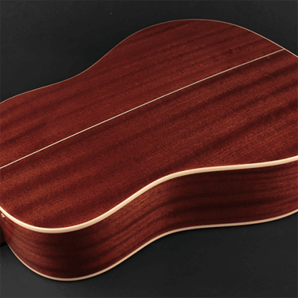Hell und dennoch natürlich mit kräftigen, warmen Mitten – das beliebte Mahagoniholz ist seit Jahrzehnten Standard für Boden und Zargen hochwertiger Akustikgitarren. Der Mahagoniboden verbessert die Korpusresonanz und trägt zu einer höheren Lautstärke bei.