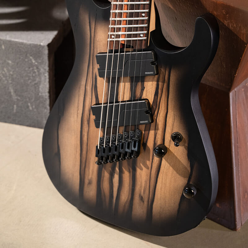 5-teiliger Ahorn- und Purple Heart-Hals für mehr Festigkeit und Stabilität bei gleichzeitiger Maximierung von Sustain und Resonanz.
