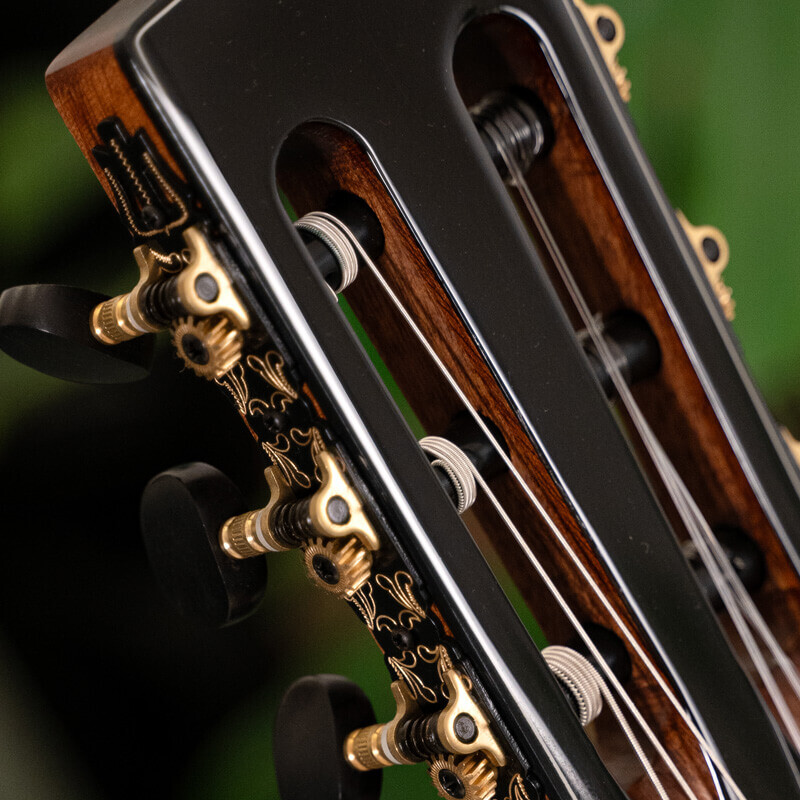 Mechaniken im Klassik-Stil mit schwarzen knöpfen für beste Stimmstabilität und ein elegantes Aussehen.